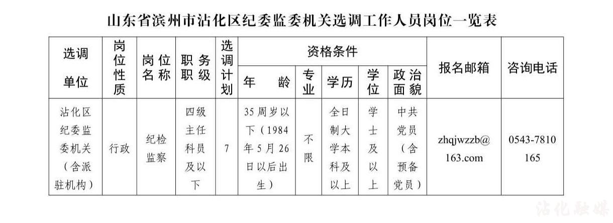 (二)本公告由沾化区委组织部、沾化区纪委监委机关负责解释,联系电话:0543-7810165。