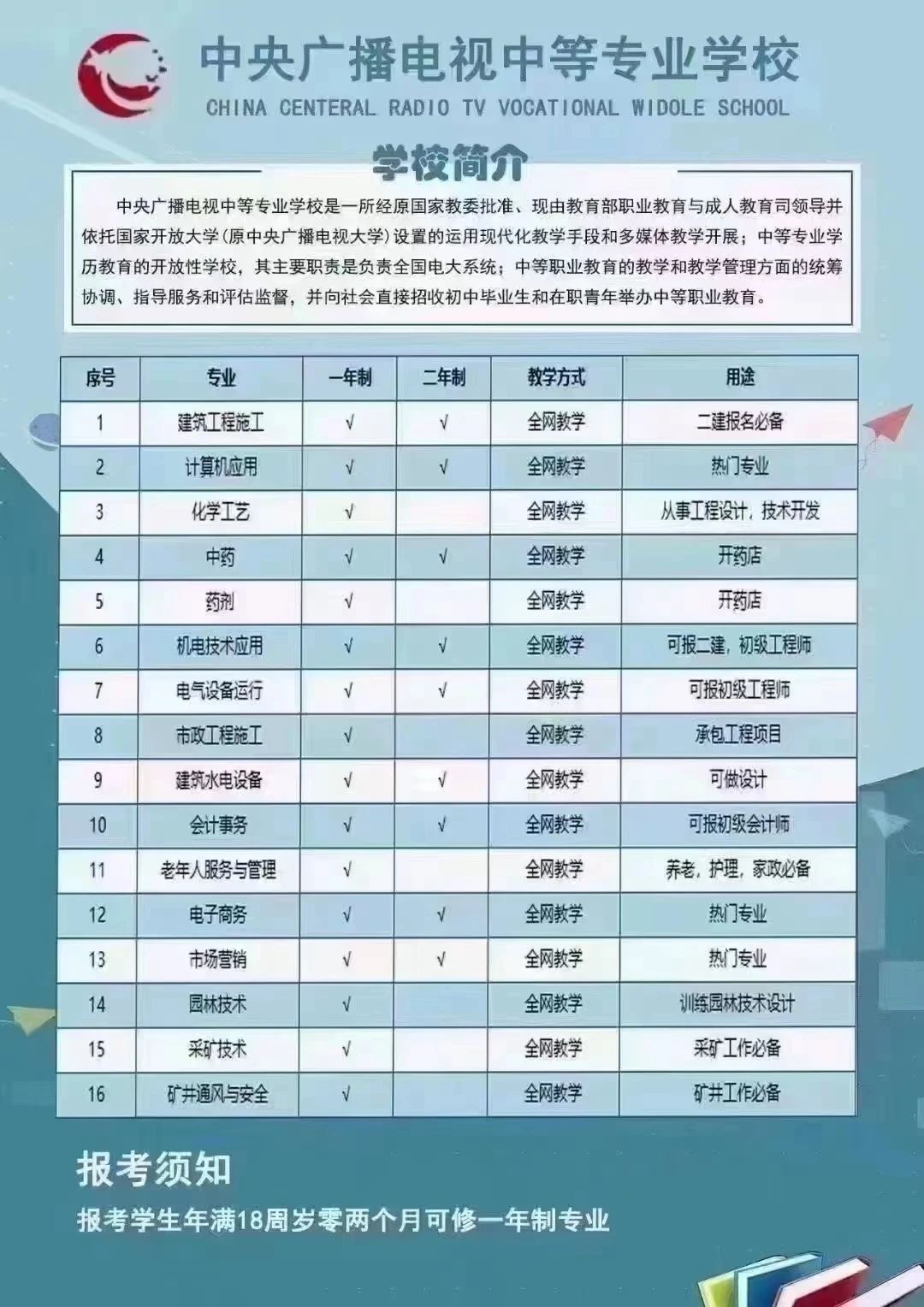2、高中、中专、技校同等及以上学历;