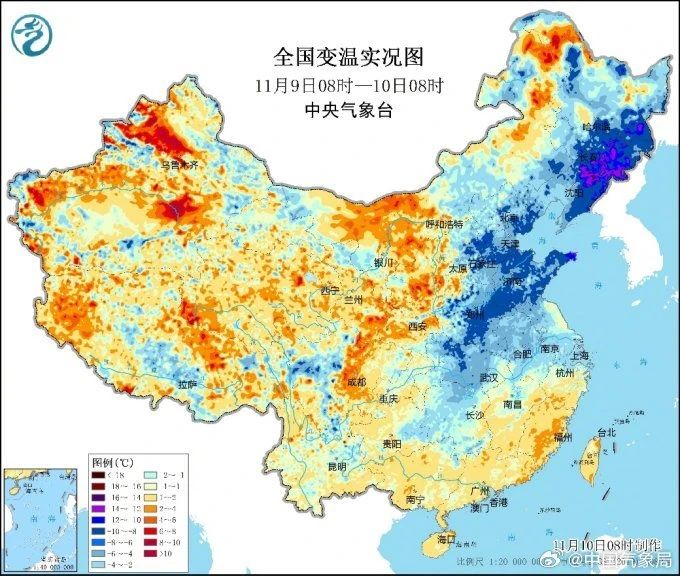 据中国天气网气象分析师张娟介绍,此次强冷空气过程将助推华北、黄淮等地的入冬进程,影响也将深入南方,带来气温大跳水,三分之二国土需羽绒服护体。