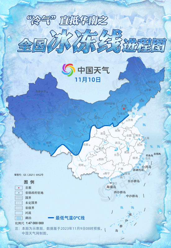 11月12日,冷空气继续向南渗透,需羽绒服出场的区域扩展至江南南部一带。像长沙,12日的最高气温将跌至9℃,是时候穿上羽绒马甲了。内蒙古东部、山西北部、陕西北部及新疆的一些地方随着气温下降,也将天寒地冻一整天,出门需裹紧长款加厚羽绒服。
