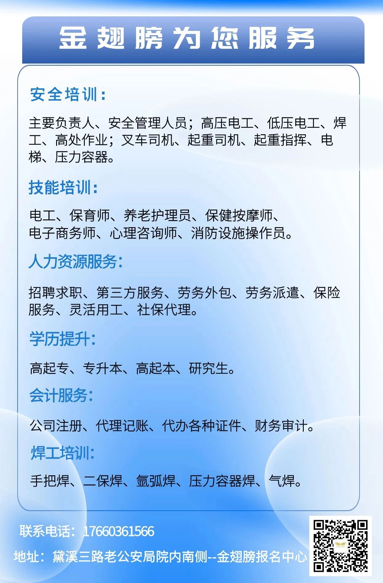 地址:邹平市黛溪三路老公安局院内南侧—金翅膀报名中心